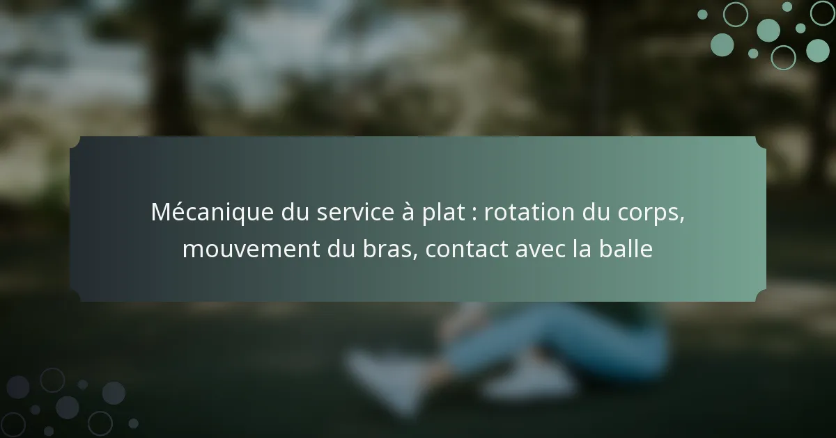 Les mécaniques du service à plat sont essentielles pour atteindre à la fois puissance et précision au tennis. Des éléments clés tels que la rotation du corps, le mouvement du bras et les techniques de contact avec la balle travaillent ensemble pour améliorer l’efficacité du service. En maîtrisant ces éléments, les joueurs peuvent considérablement améliorer leur performance au service sur le court.