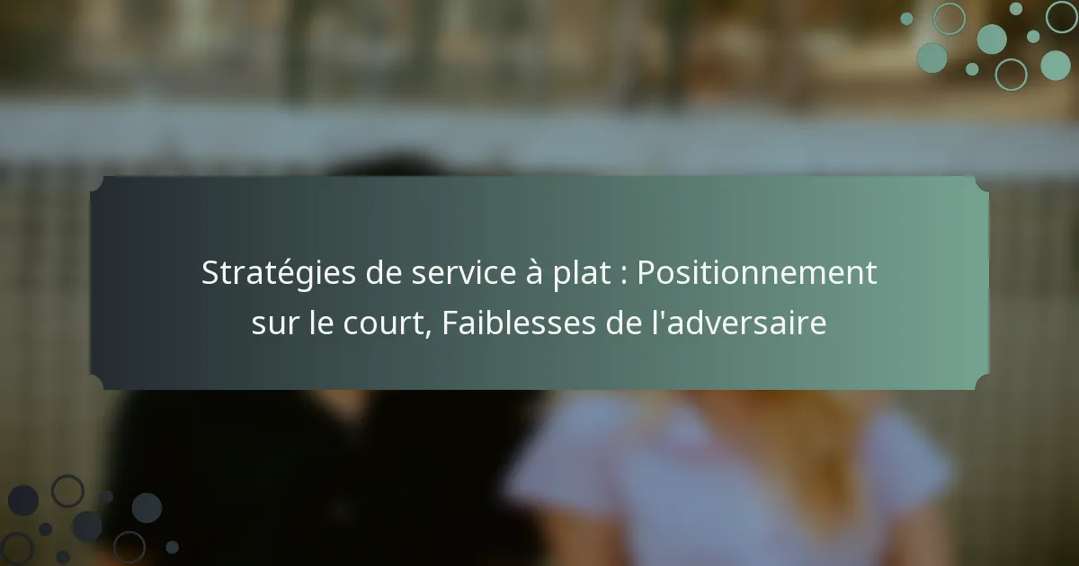 Les stratégies efficaces pour exécuter un service à plat se concentrent sur un positionnement optimal sur le court, l’identification des faiblesses de l’adversaire et les ajustements en termes de vitesse et de placement. Un service à plat se caractérise par un faible effet et une trajectoire rapide, rendant difficile le retour pour les adversaires. Maîtriser ce service implique de comprendre sa mécanique et de pratiquer des techniques spécifiques.
